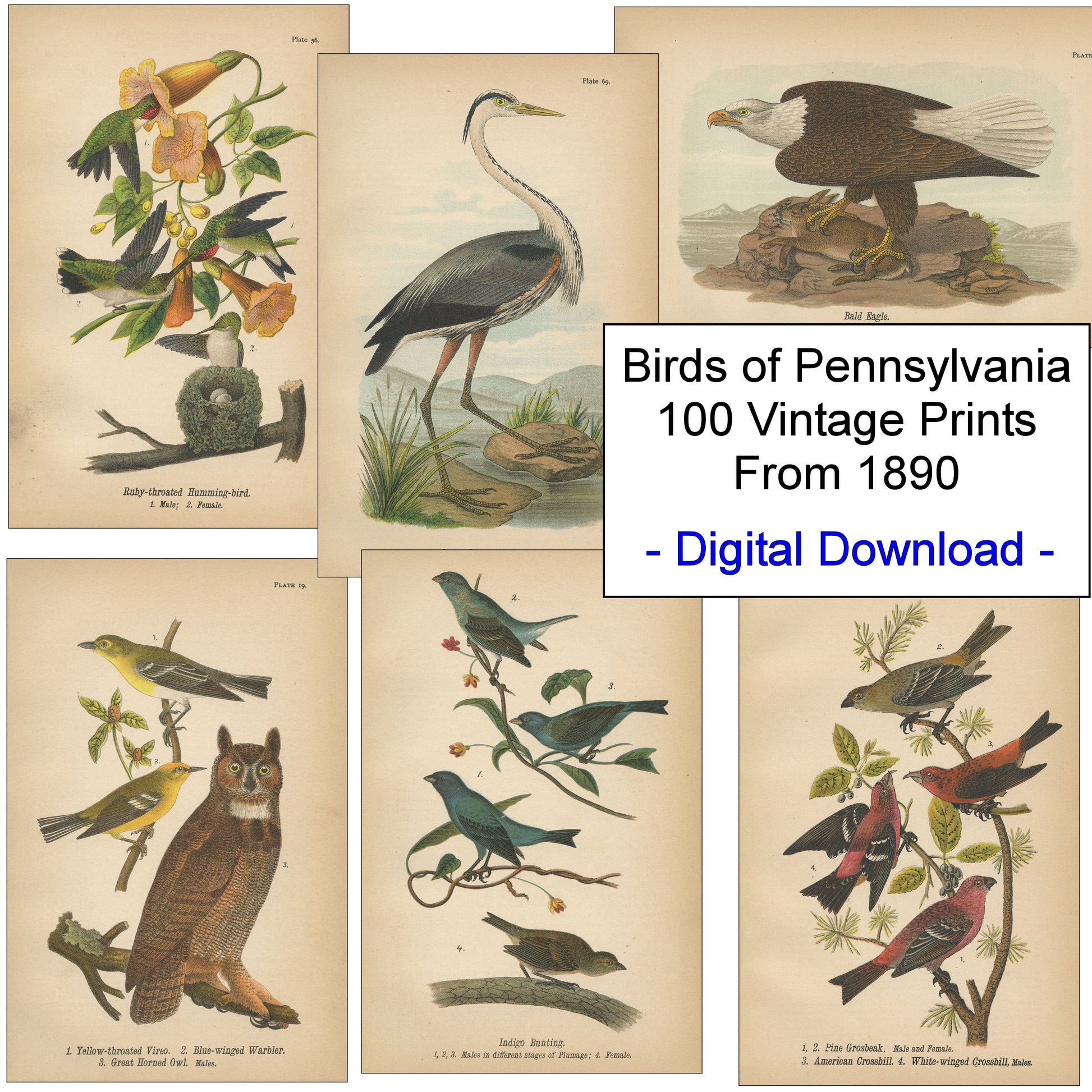 Birds of Pennsylvania 100 Vintage Digital Print Download