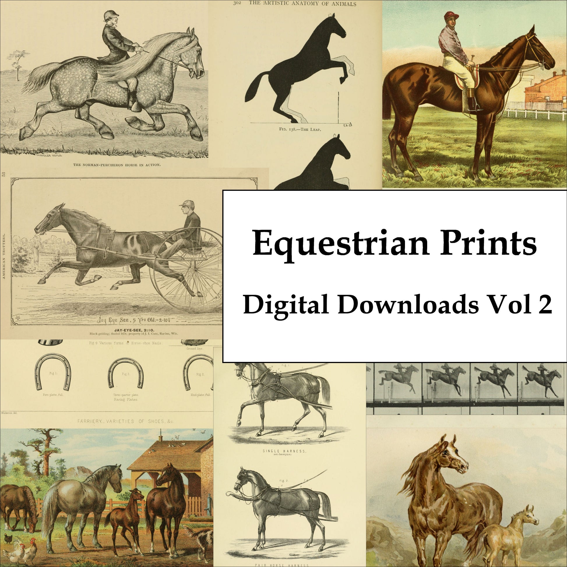 92 Equestrian digital prints, horseback riding and other horse related illustrations from the 1800's and early 1900's. Each .jpg image measures 1200px to 2500px on the long side. 3 sample images are in the listing. Clipart for collage, junk journals...