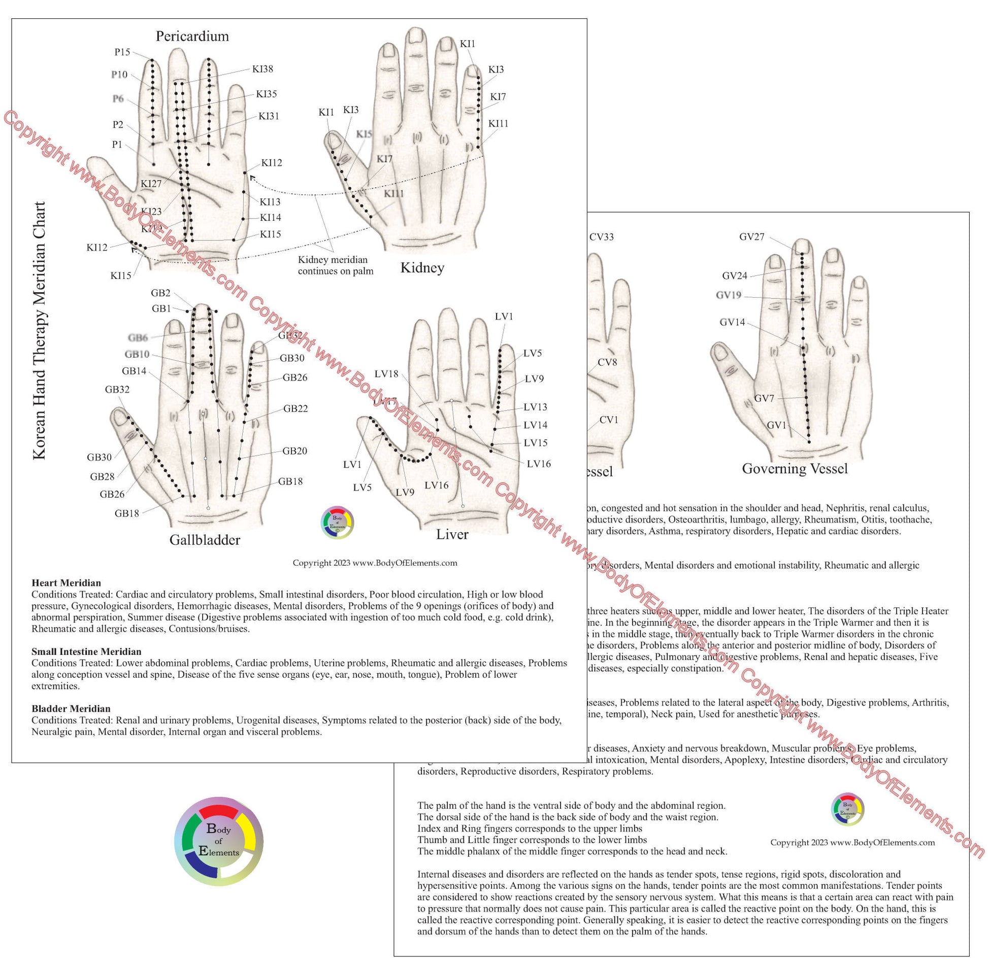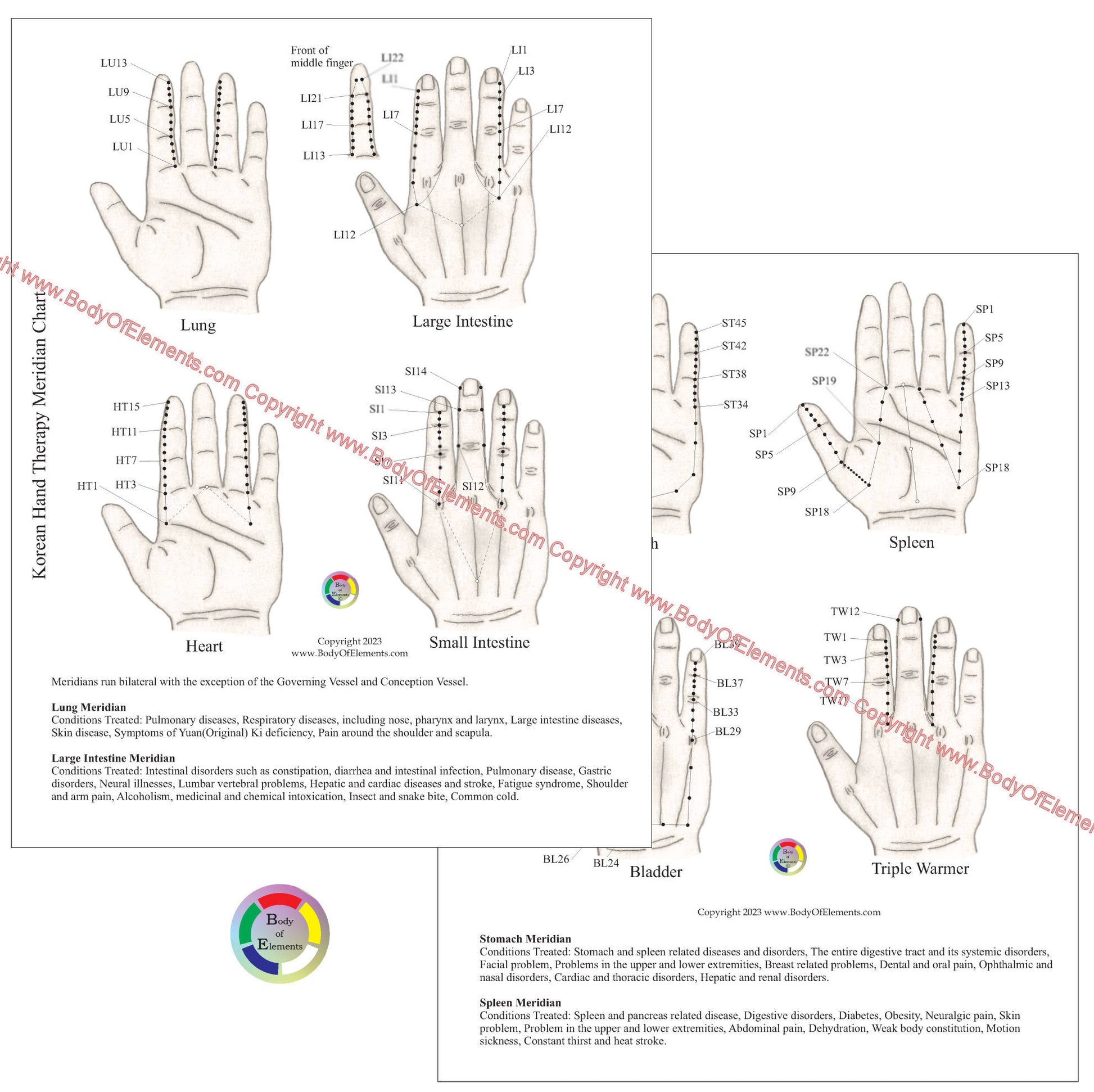 Korean Hand Therapy Meridian Two Chart Set 8.5" X 11".