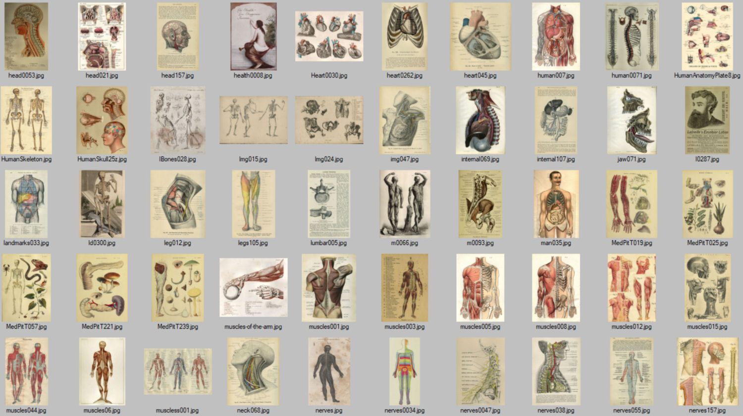 225 digital prints of vintage anatomy illustrations from the 1800's and early 1900's. Covering all the systems of the body. Each .jpg image measures 800px on the long side. Clipart for collage, junk journals...