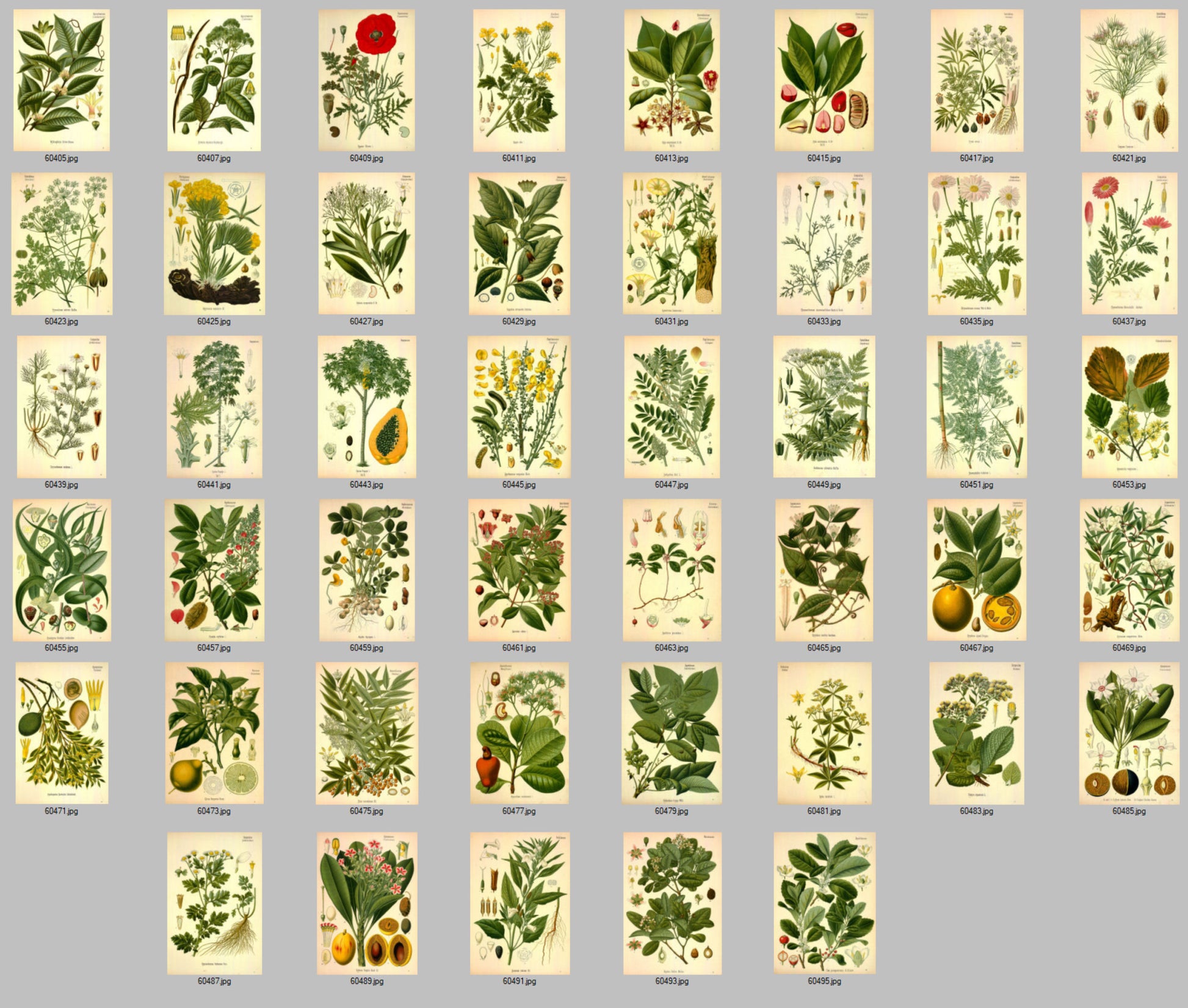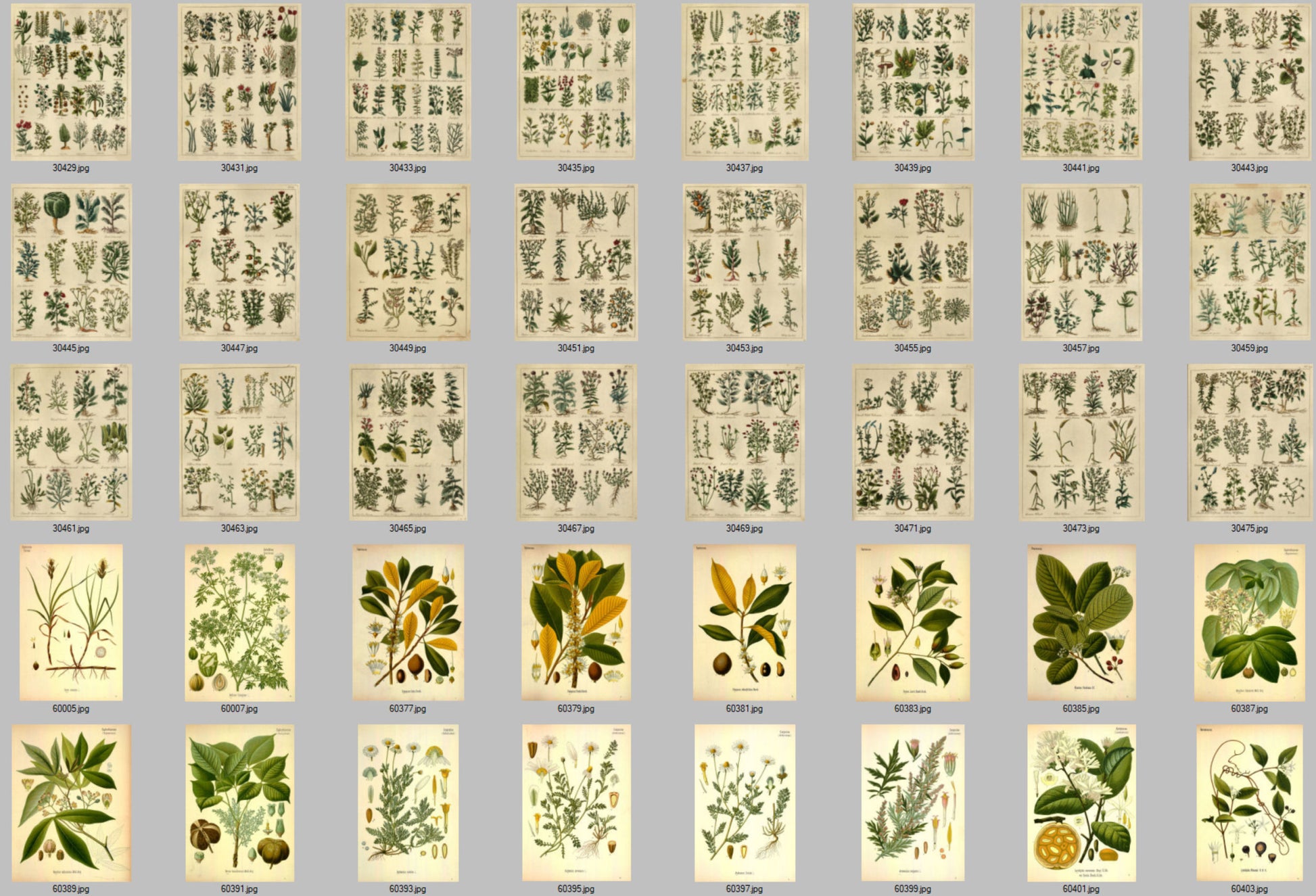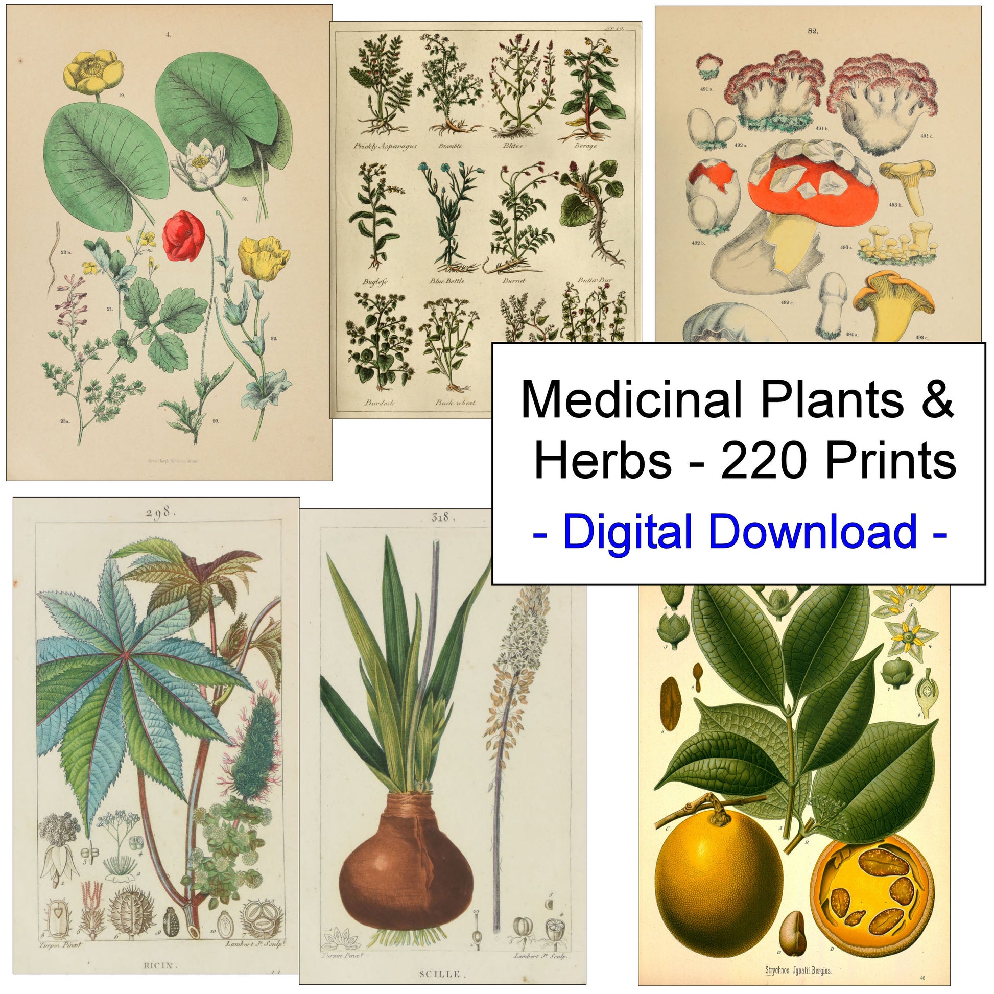 Vintage medicinal plant illustrations from the 1800's and 1900's. Total of 220 .jpg images measuring 2000px on the long side. Clipart for collage, printable, junk journals...