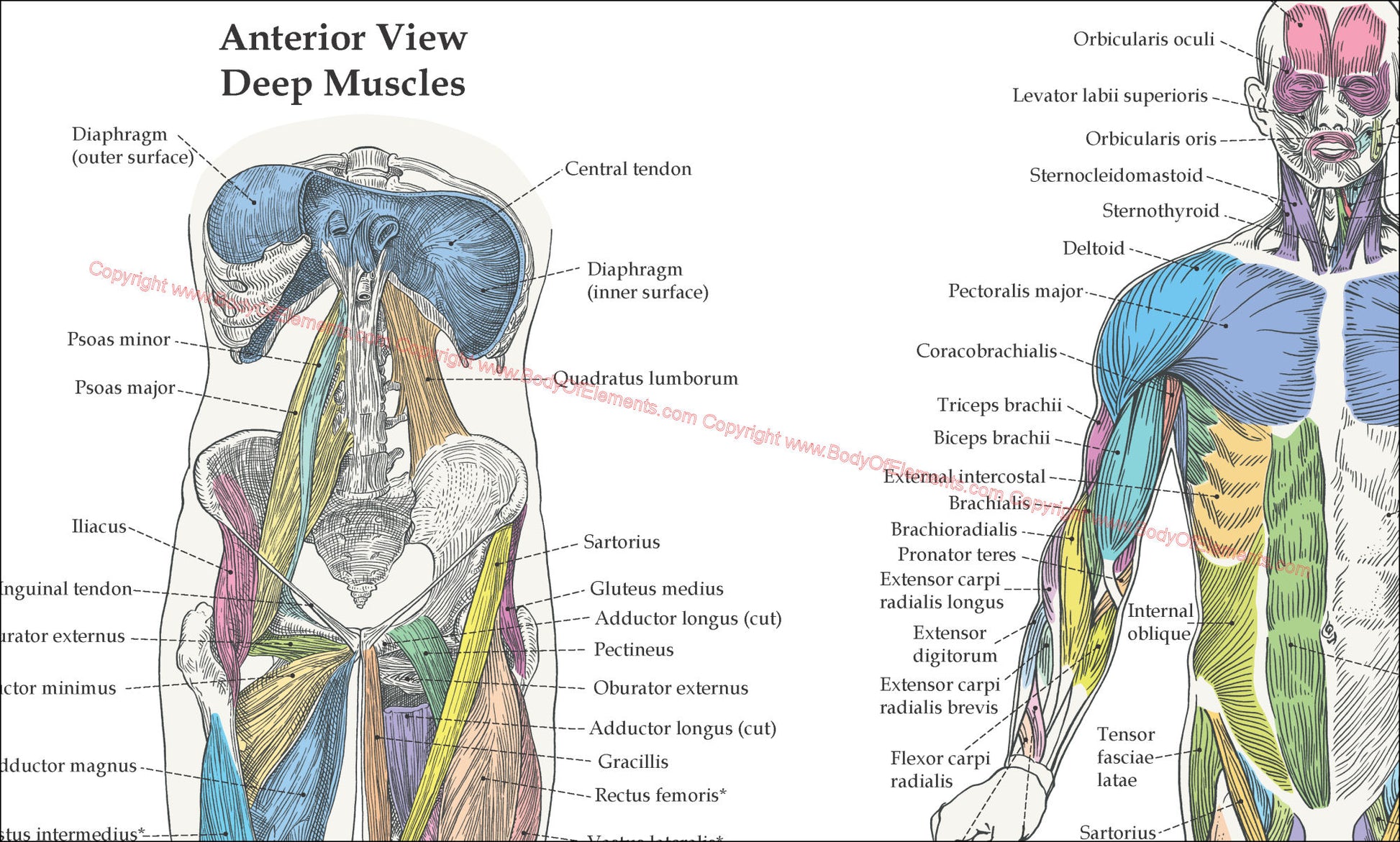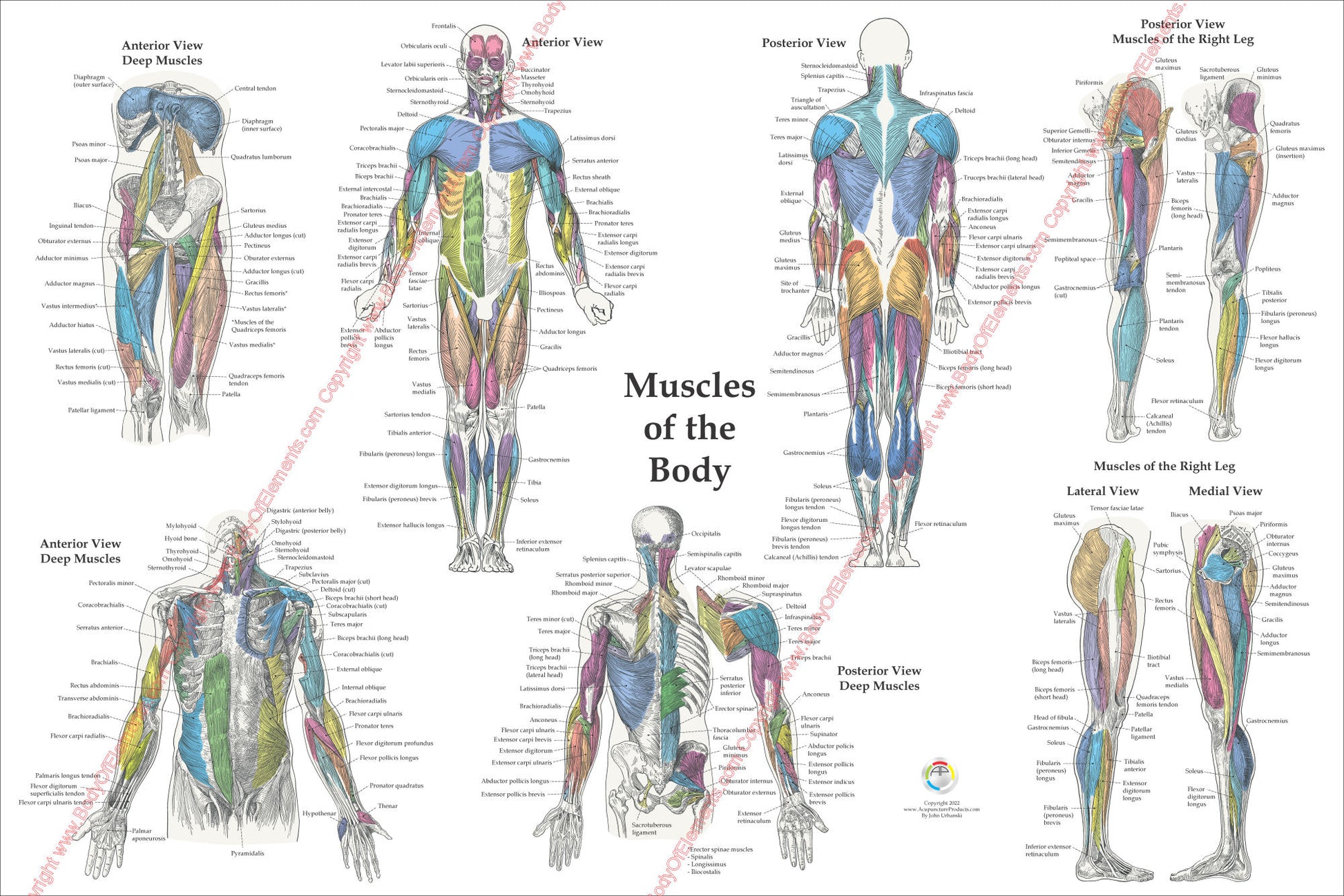 Muscle Anatomy Poster Anterior Posterior Deep Layers 24 X 36