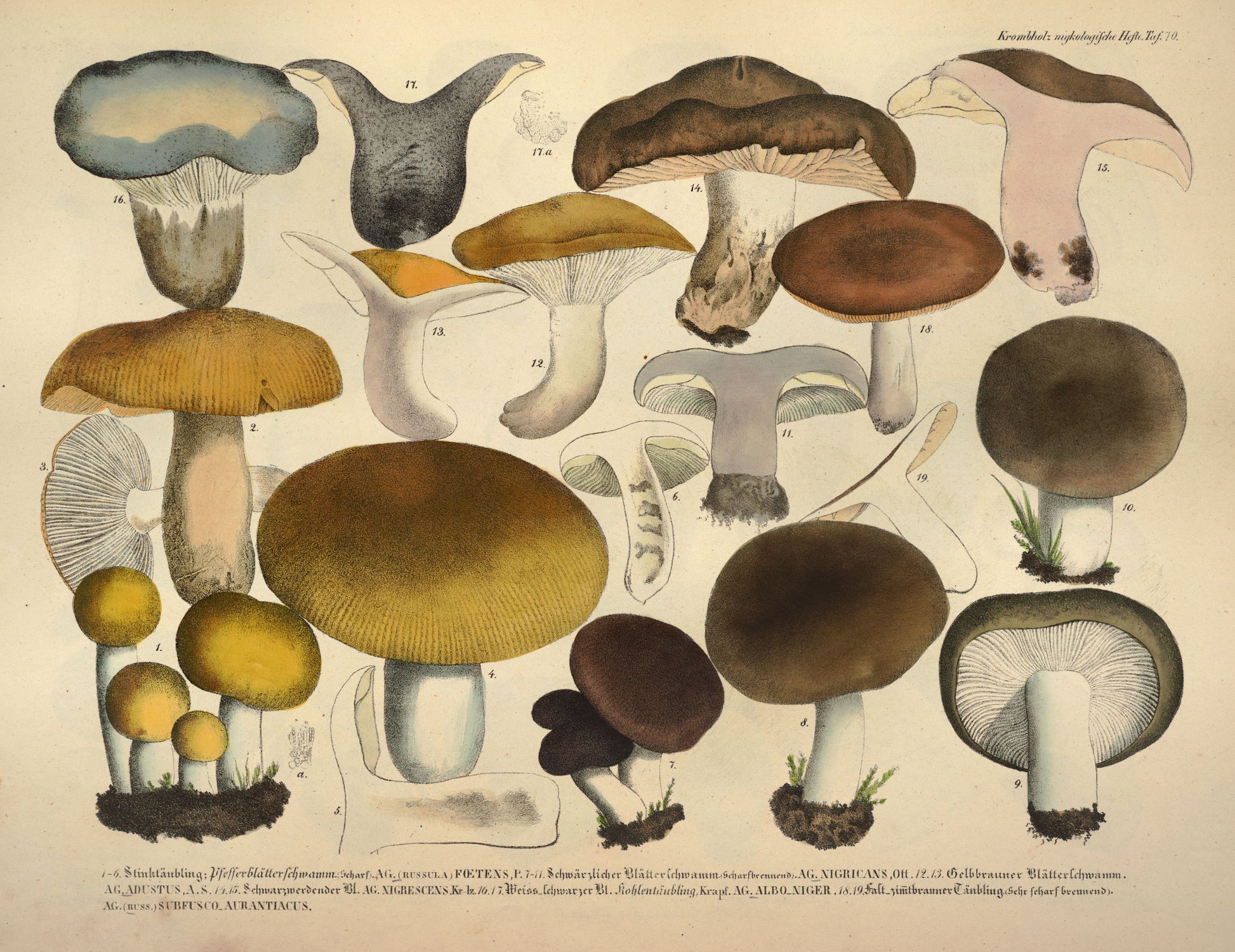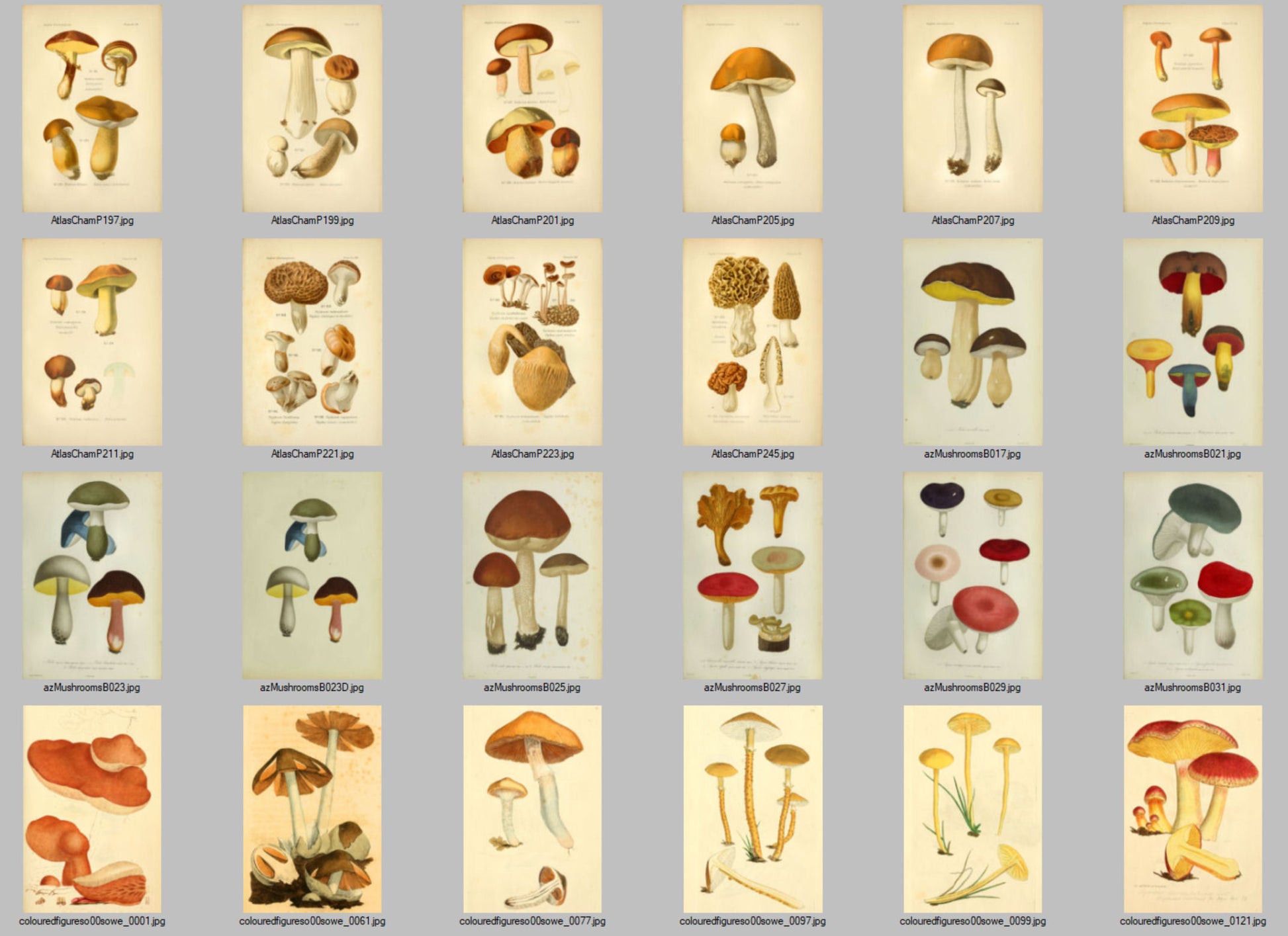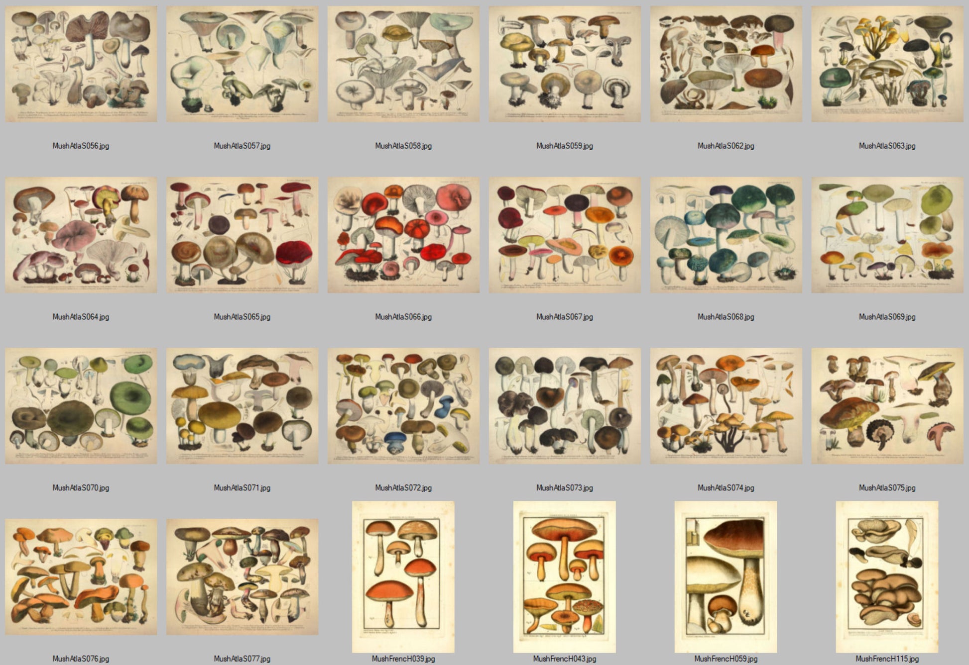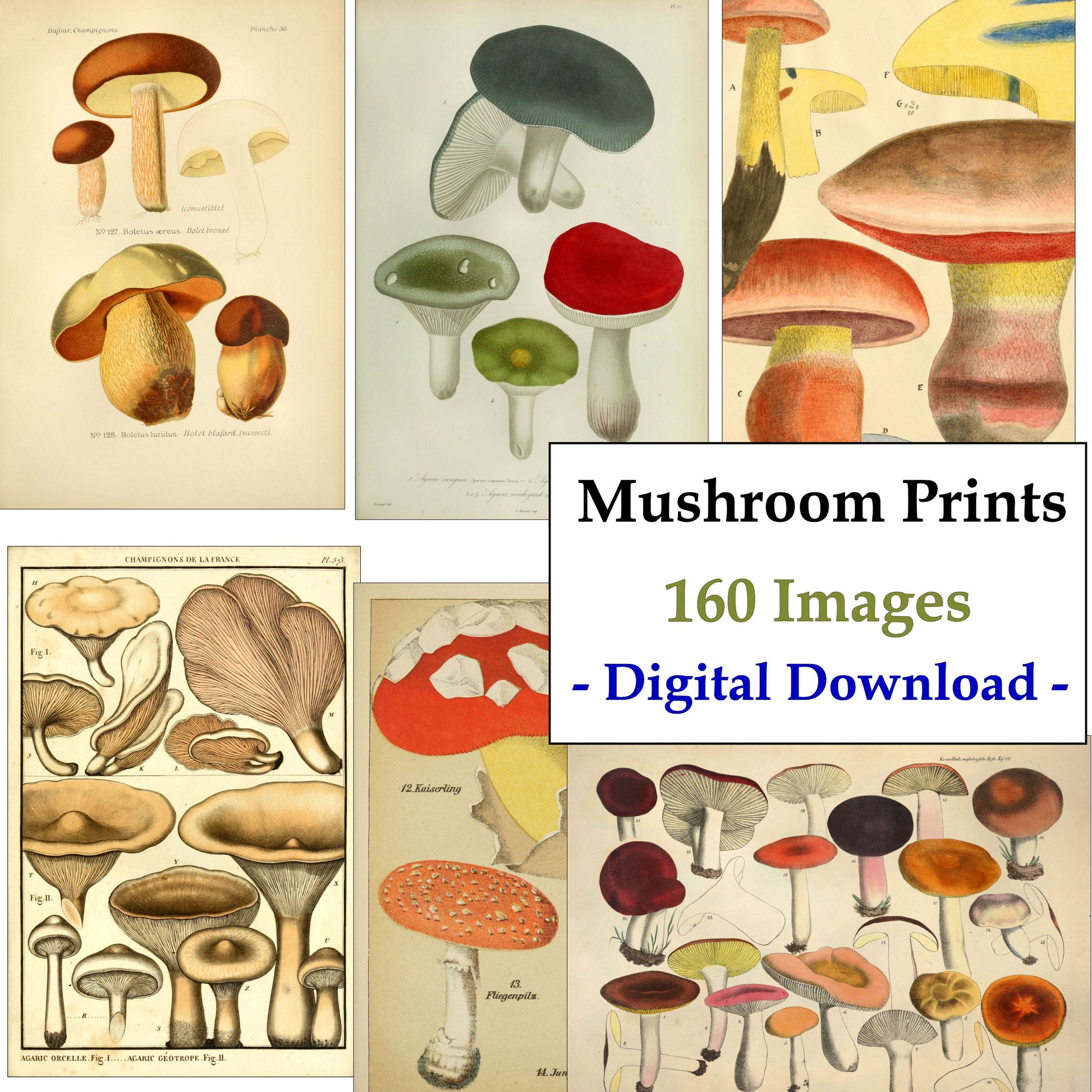 160 vintage mushroom illustrations in .jpg format from several books. Various sizes with most being 2500px on the long side. Clipart for collage, printable, junk journals...